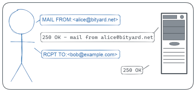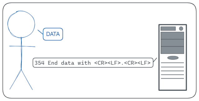 If you've made it this far, there's a fair chance the server will accept the message and it might actually even deliver it. So we tell it that we're about to send the message: