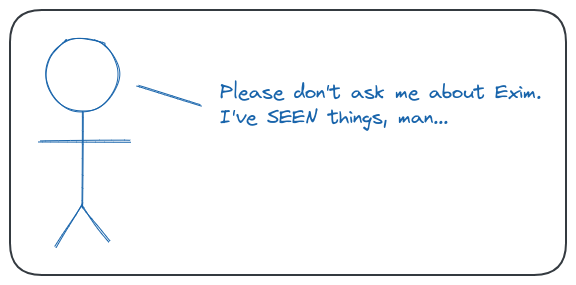Internet Mail, or email, or whatever kids these days call it, was one of those things that terrified me very early on when I was a strapping young System Administrator. Everything else that I was doing at the time seemed comparitively easy: Linux/BSD installs, system setup, automation, and such. Learning how various Unix shells and relational databases worked was a joy. But mail server administration... now that scared the hell out of me.